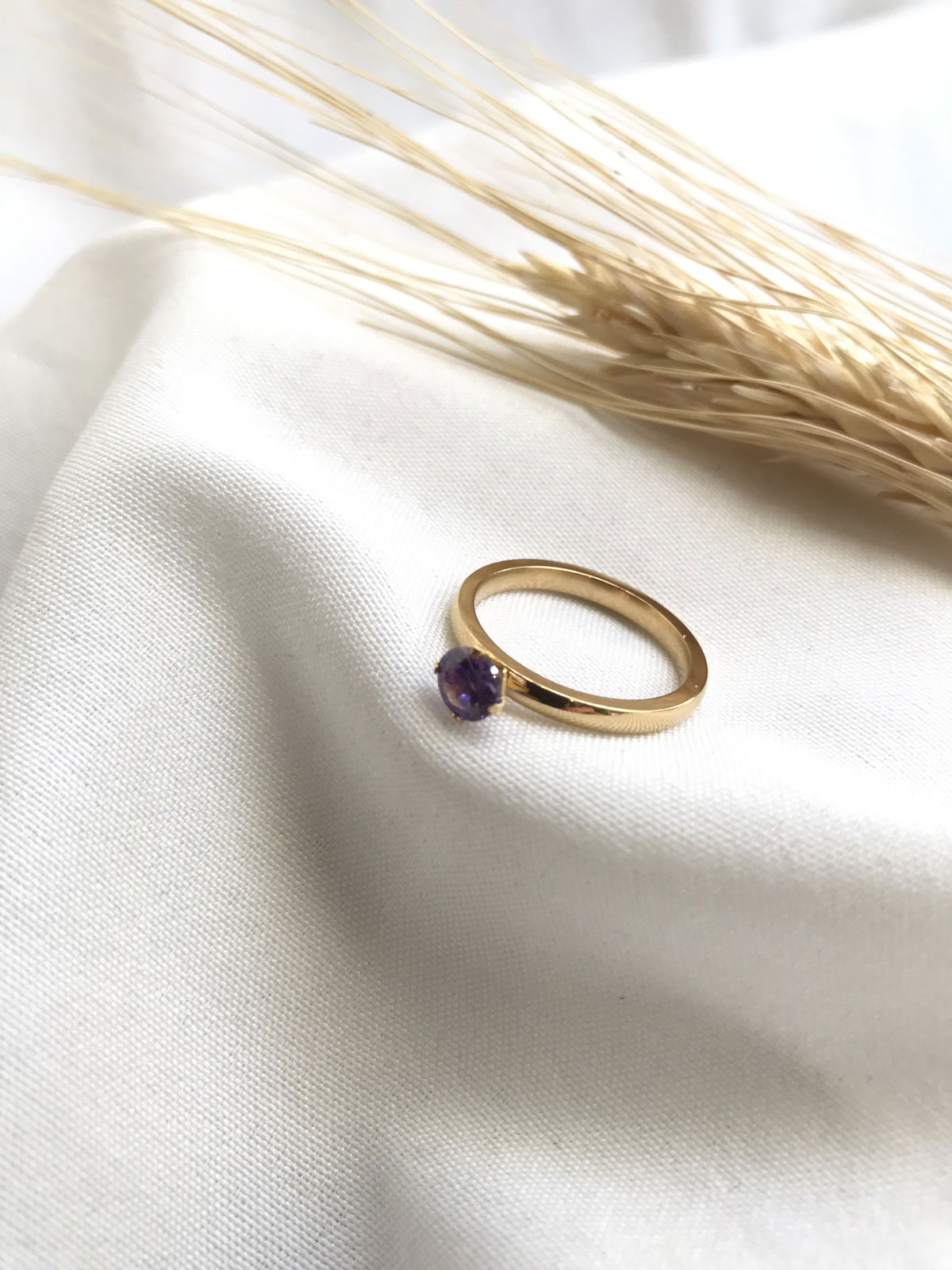 Anillo dorado cubic lila 2mm
