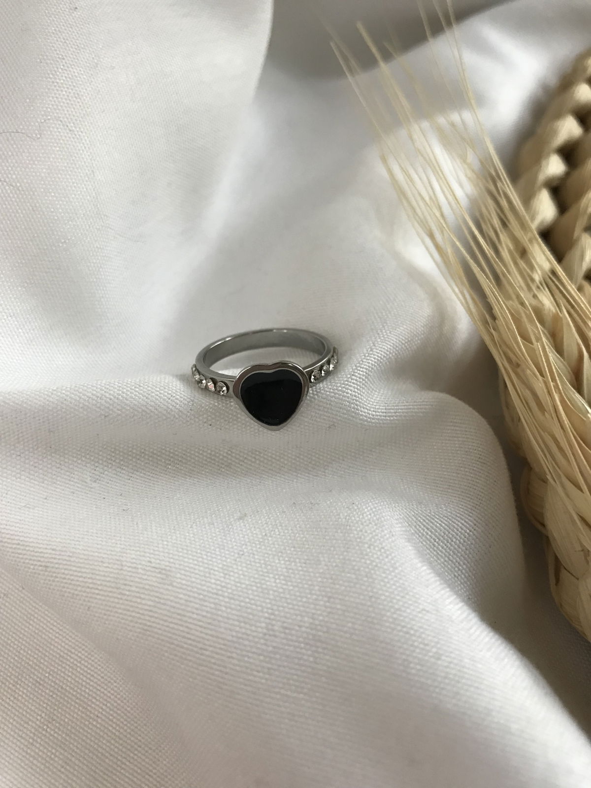 Anillo corazón negro strass