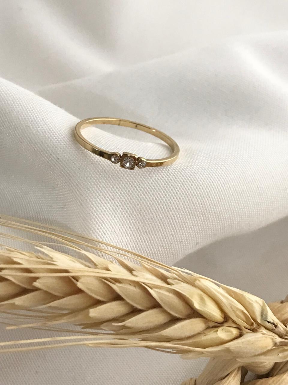 Anillo dorado centro triple strass