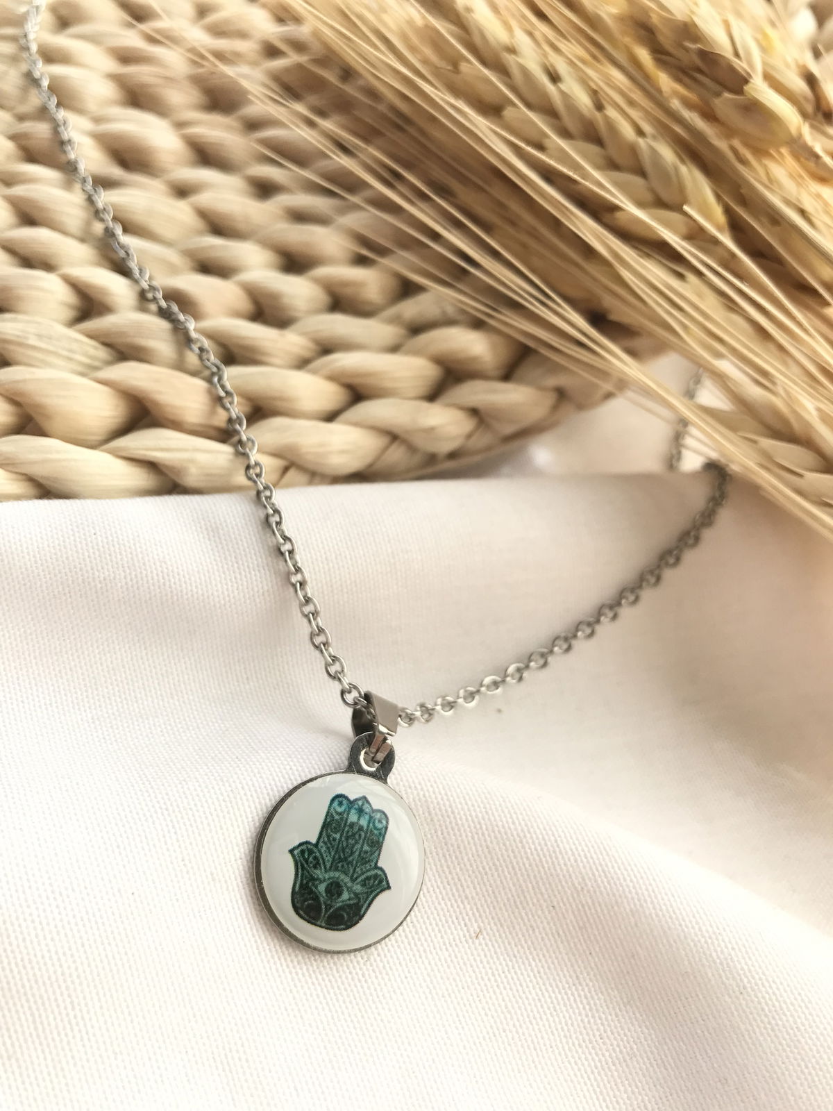 Collar mano de Fátima fondo blanco