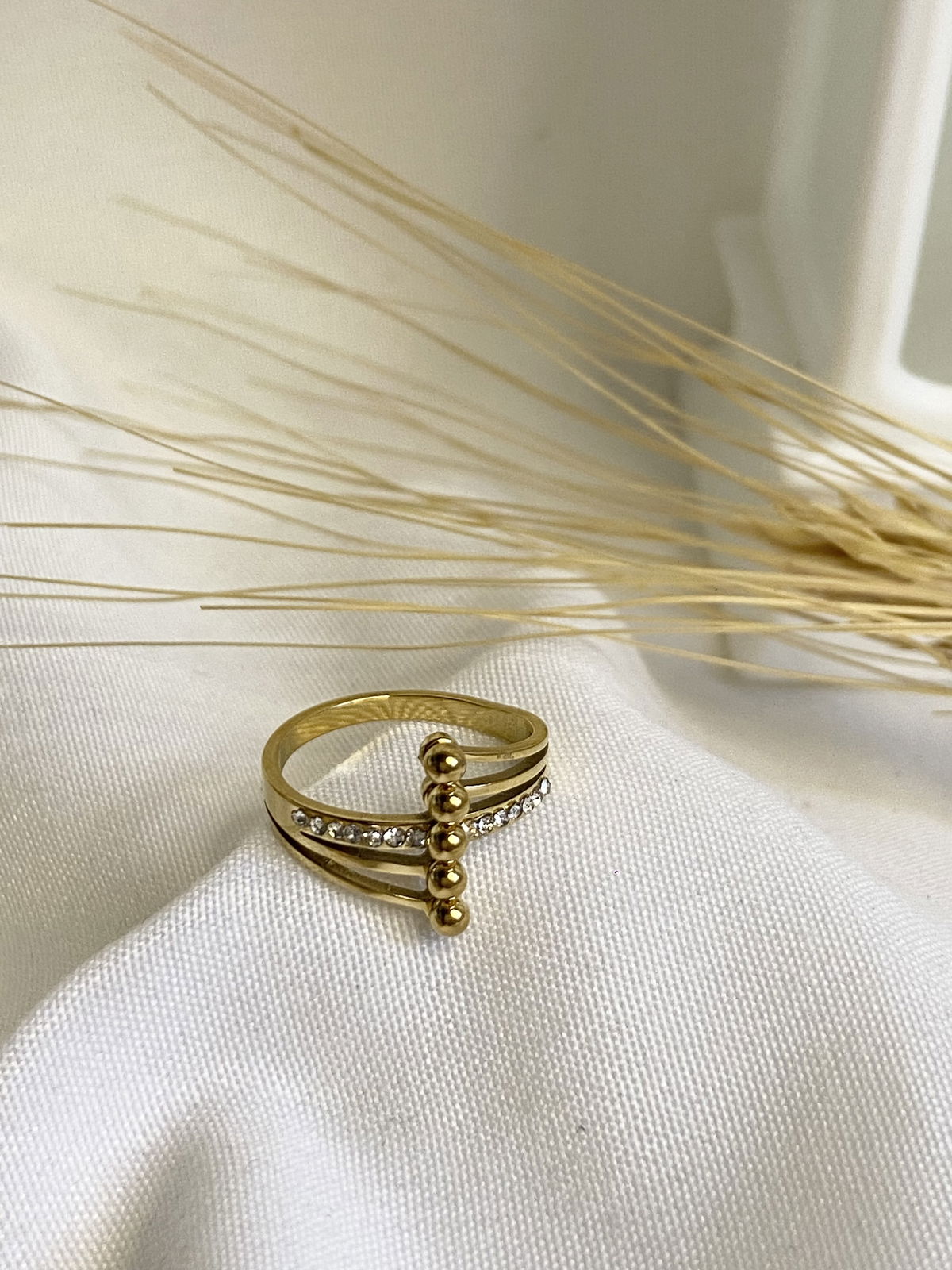 Anillo dorado 5 puntos y strass